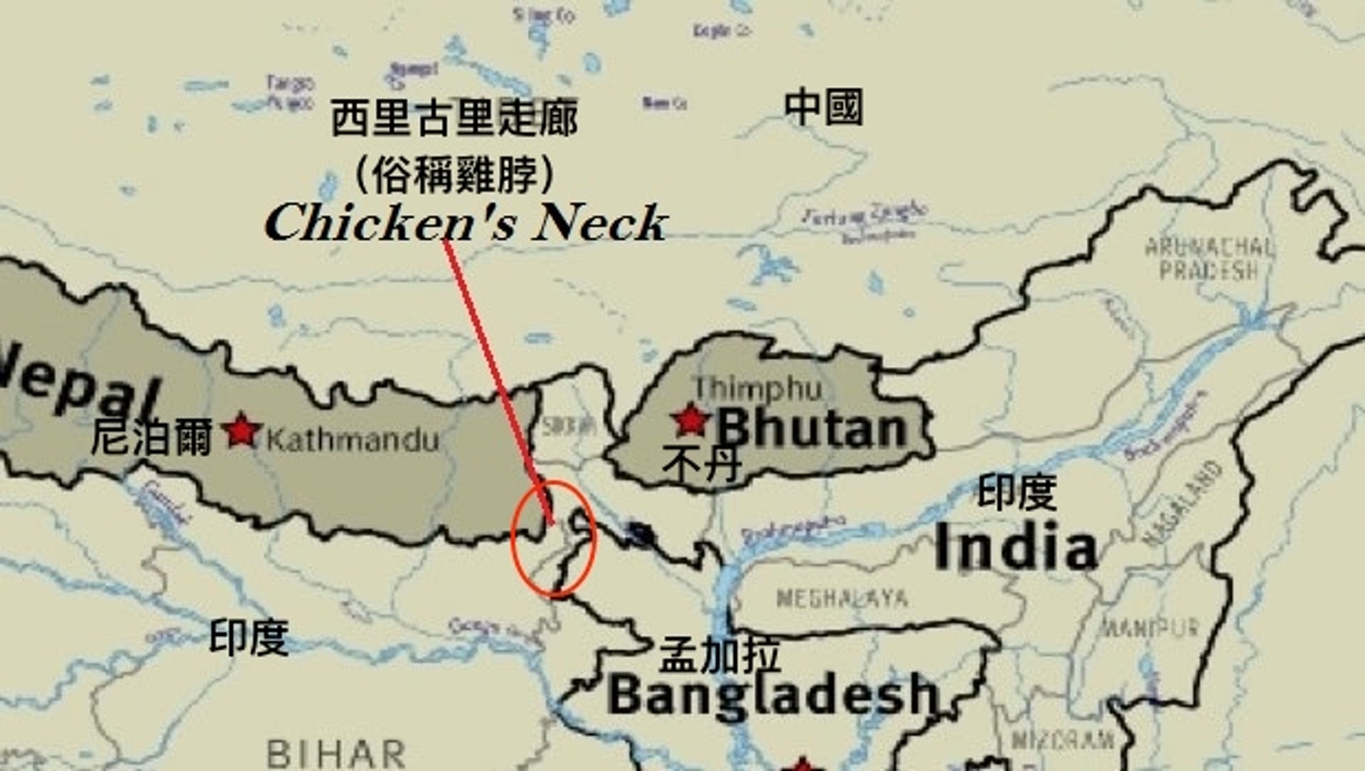 - 控制洞朗即可彻底分割印度东北邦